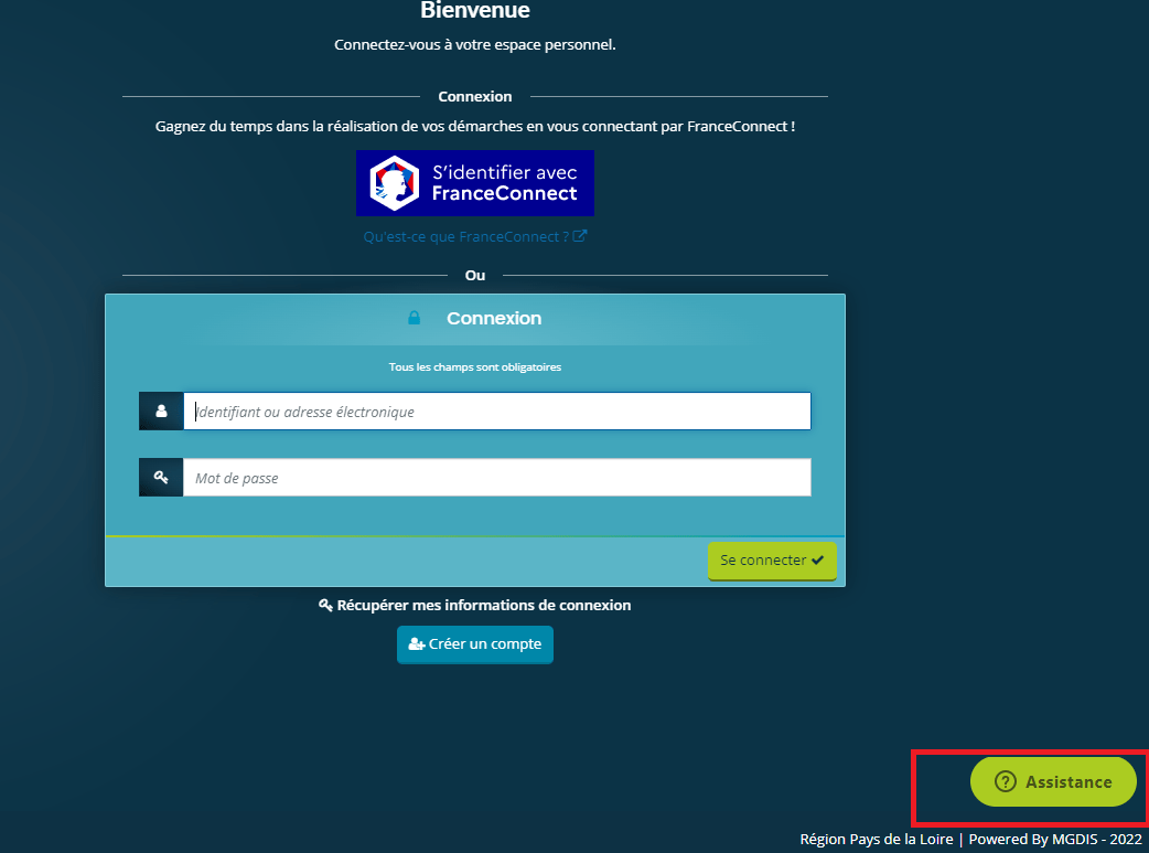 Pour tout problème technique sur le Portail des Aides, cliquez sur le bouton Assistance en bas à droite de votre écran.