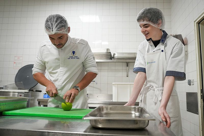 Tout au long de l’année, Samuel Albert, chef du restaurant Les Petits Prés et de la Brasserie du Ralliement à Angers, rencontrera les équipes de restauration dans les lycées et proposera des menus de saison créatifs qui seront réalisés par les équipes de restauration des lycées des Pays de la Loire.